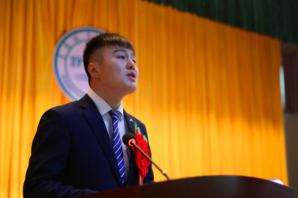优秀毕业生代表、生物工程学院畜牧兽医专业毕业生、襄阳正大有限公司销售总经理李明讲述了在校期间的学习感悟和工作后立足岗位建功立业的体会。