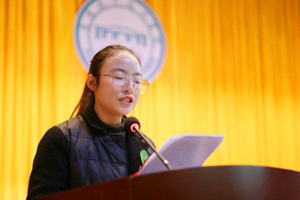 李蕊、陆天睿同学分别代表先进集体和个人发言,与参会师生分享班风建设经验及个人成长感悟。