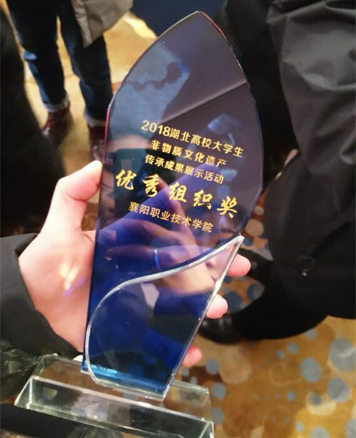 12月13日,在省文化旅游厅、省教育厅主办的“2018湖北高校大学生非物质文化遗产传承成果展示”活动中,我校参赛项目“老河口木版年画艺术实践工作坊”获非物质文化遗产·艺术实践工作坊展示一等奖,学校获得“优秀组织奖”。